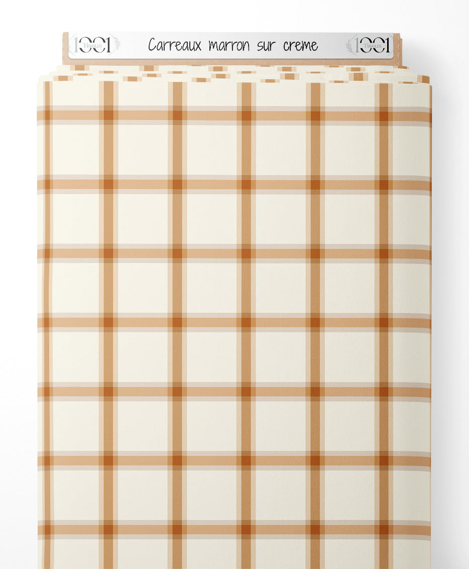 Les lignes marron forment un quadrillage uniforme. Le fond crème met en valeur le motif géométrique.Les tissus
