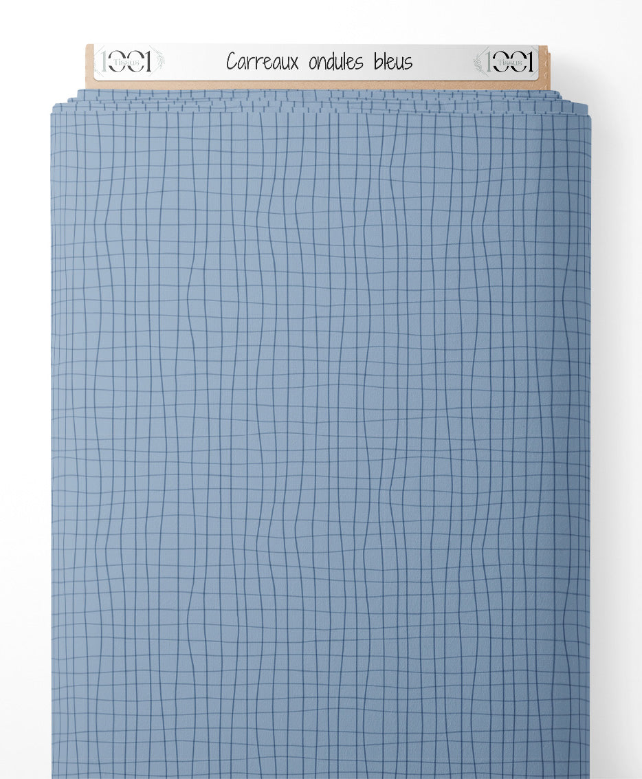 Les lignes ondulées créent un effet de mouvement subtil. Le contraste entre le bleu foncé et le bleu clair apporte une touche visuelle intéressante.Les tissus