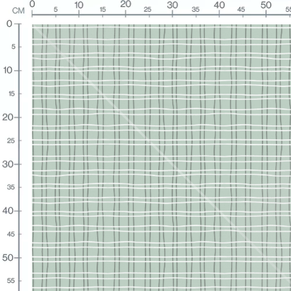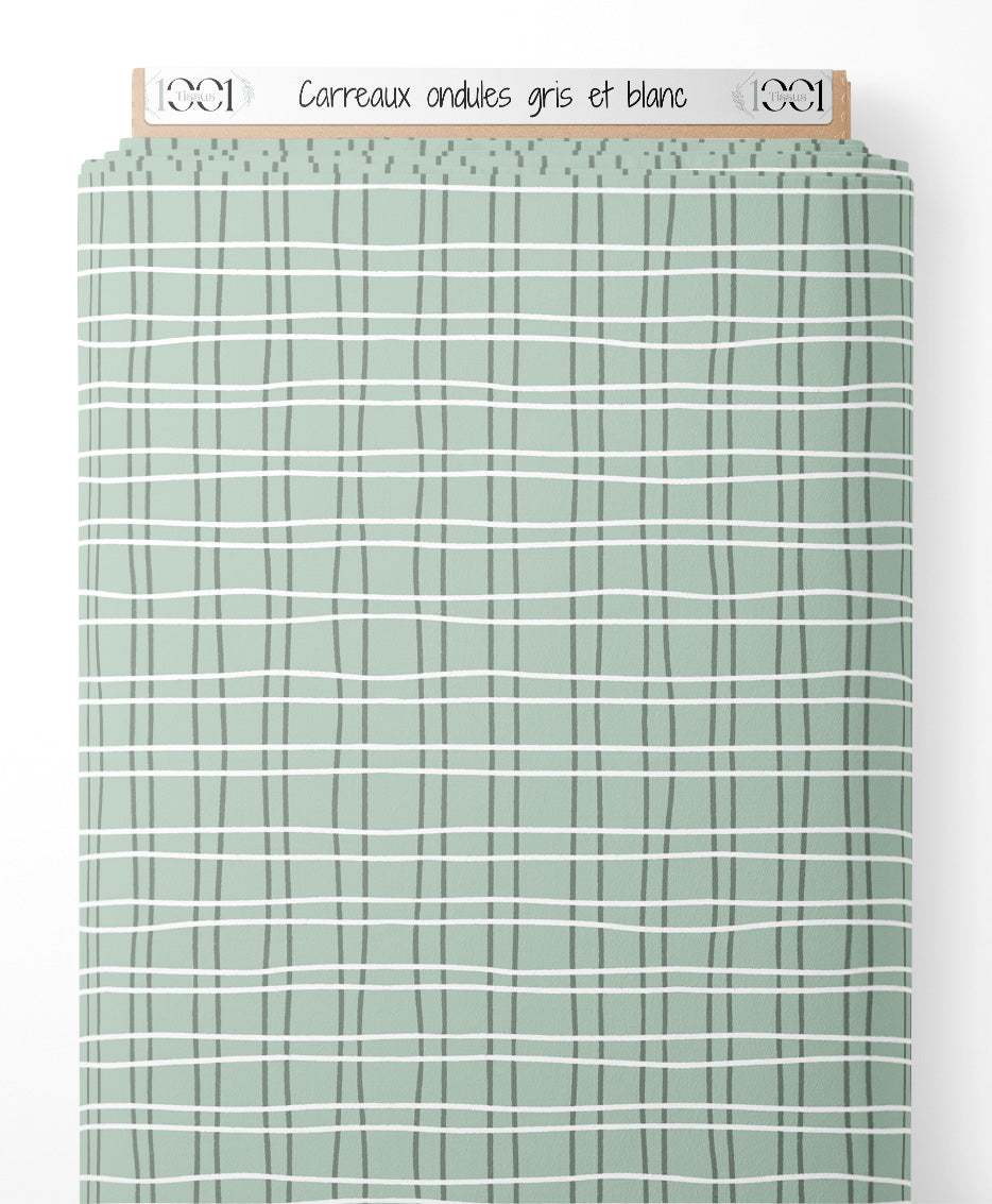 Les lignes blanches et grises forment un motif de carreaux ondulés. Le fond vert ajoute une touche de couleur douce et apaisante.Les tissus