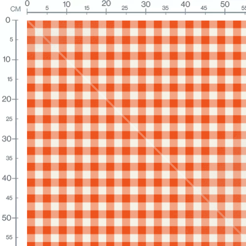 Les carreaux sont de taille uniforme et alternent entre l'orange vif et le blanc. Le motif crée un effet visuel classique et intemporel.Les tissus