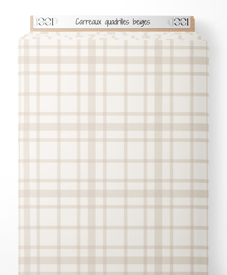 Carreaux beiges sur fond blanc. Motif quadrillé avec lignes croisées.Les tissus