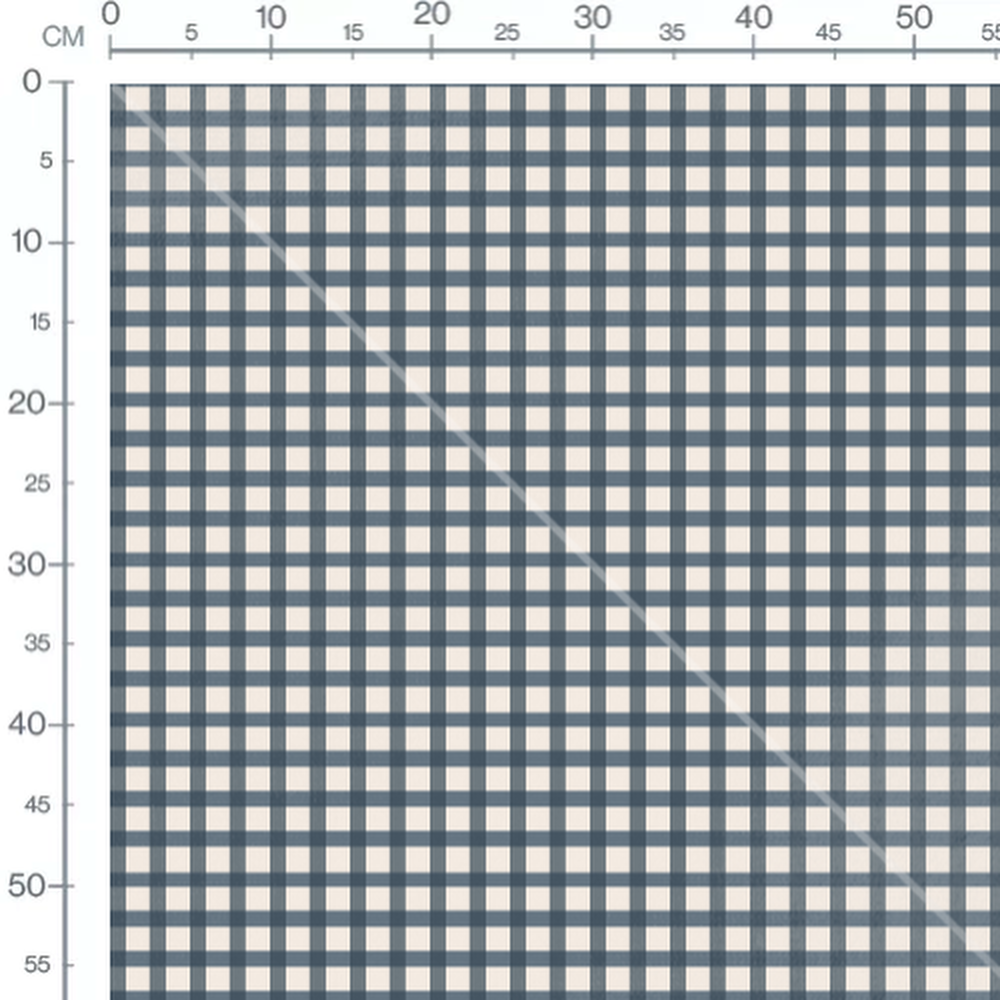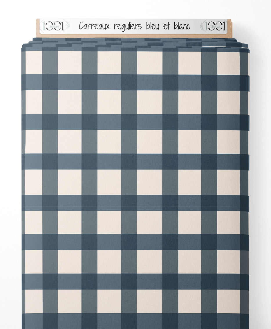 Les carreaux sont de taille uniforme et alternent entre le bleu et le blanc. Le motif crée un effet visuel classique et intemporel.Les tissus