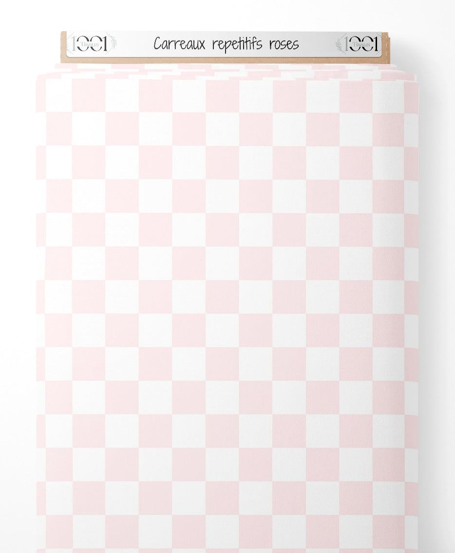 Carreaux roses et blancs sur fond uni. Motif géométrique simple et répétitif.Les tissus