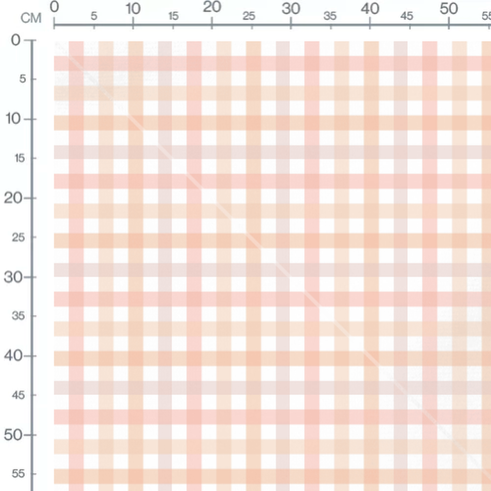 Les carreaux sont de tailles égales et alternent entre des teintes de rose et de beige. Le fond blanc met en valeur les couleurs douces du motif.Les tissus