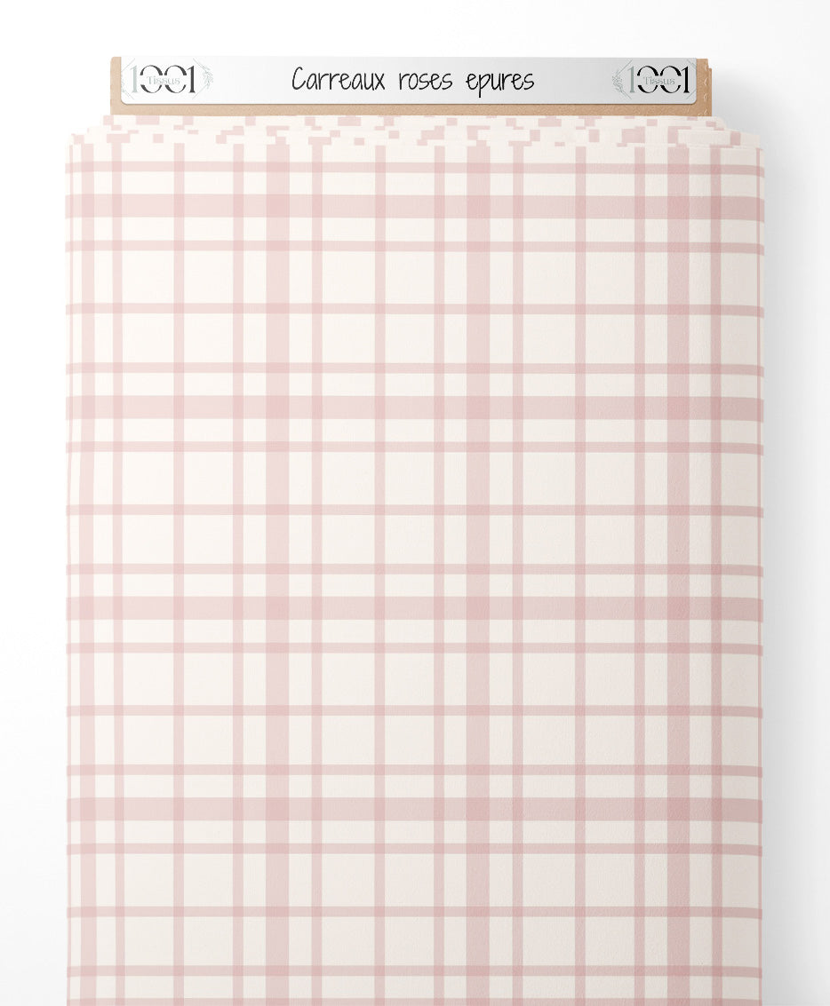 Les lignes roses forment un motif de carreaux réguliers. Le fond blanc met en valeur la douceur des lignes roses.Les tissus