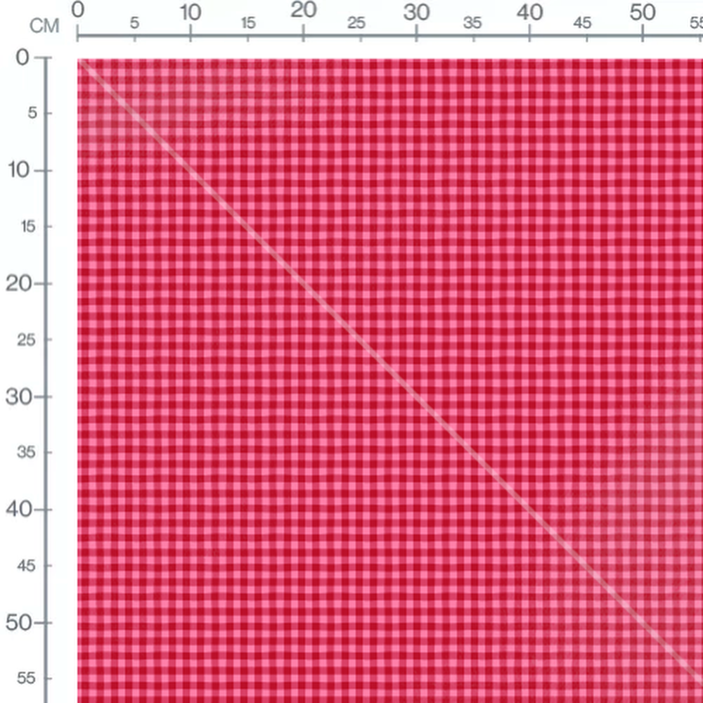 Les carreaux alternent entre des teintes de rouge et de rose. Le motif crée un effet visuel dynamique et coloré.Les tissus