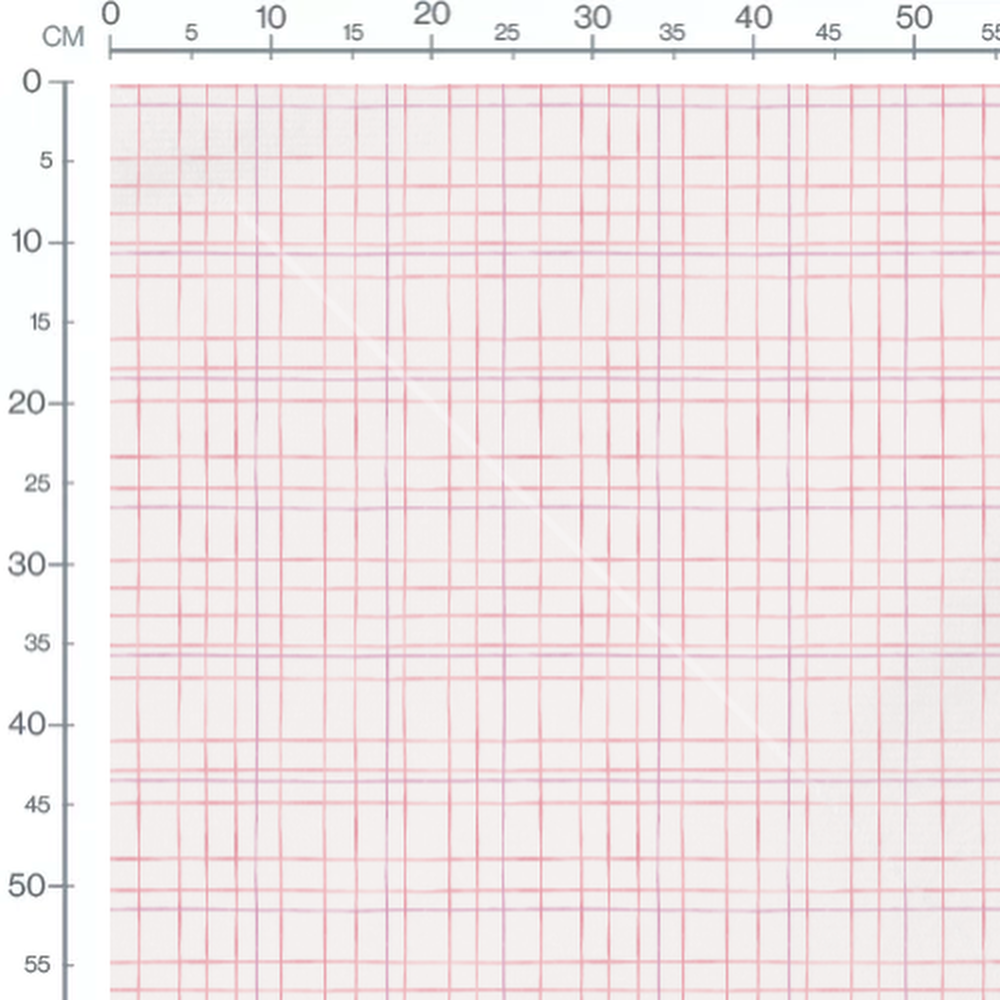 Les lignes roses et violettes se croisent pour créer un motif de carreaux. Le fond blanc met en valeur la simplicité du design géométrique.Les tissus