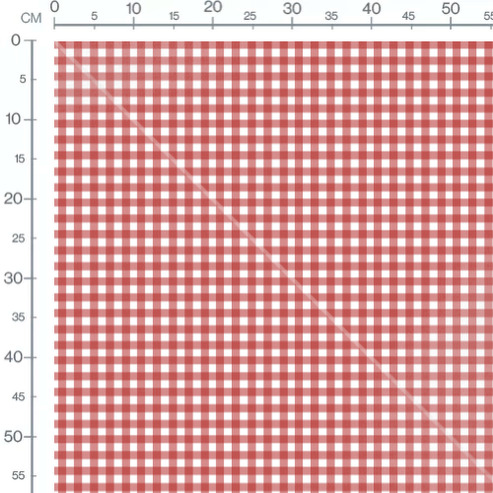 Les carreaux alternent entre le rouge et le blanc. Le motif est régulier et symétrique.Les tissus