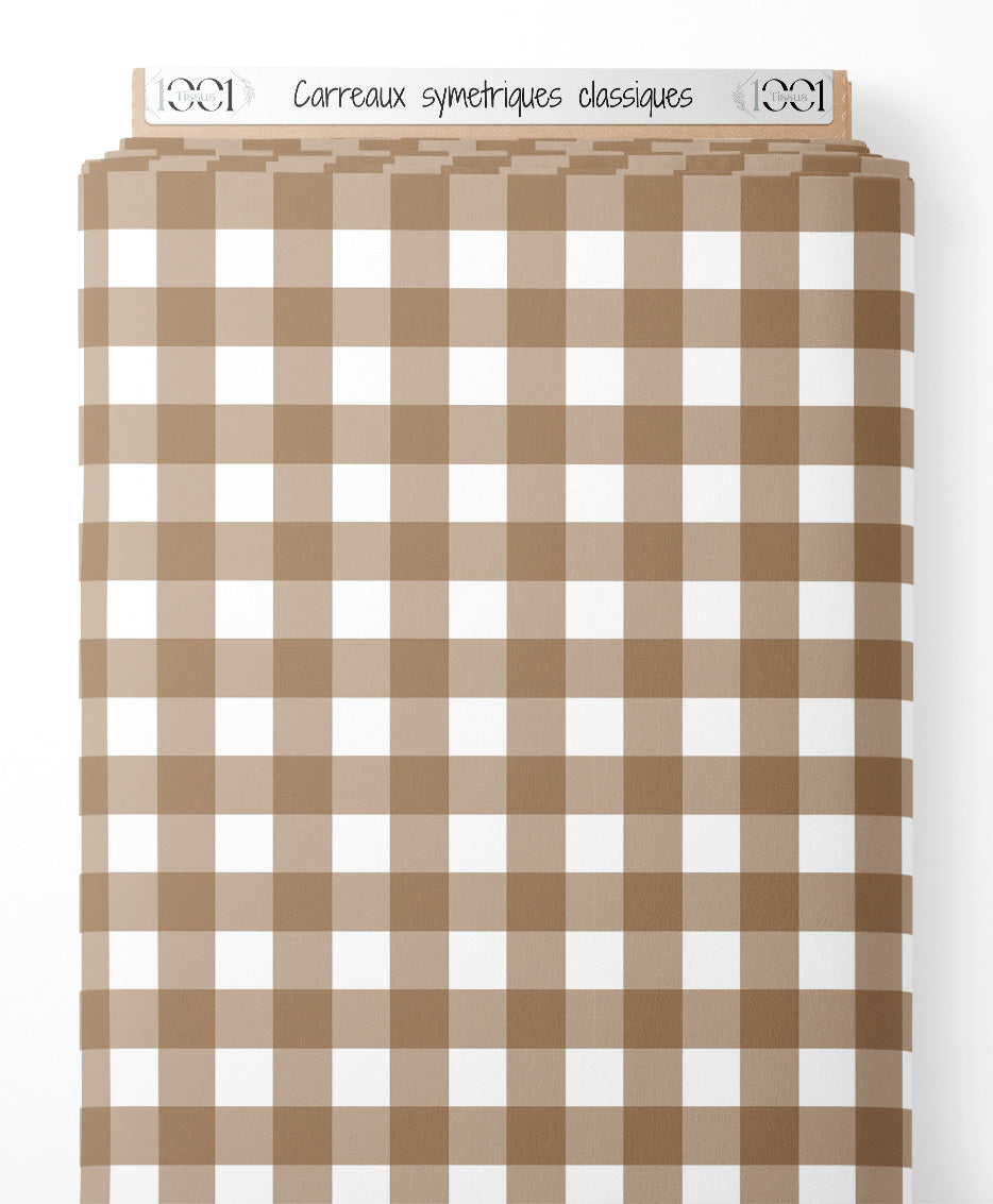 Les carreaux alternent entre beige et blanc. Le motif est simple et classique.Les tissus