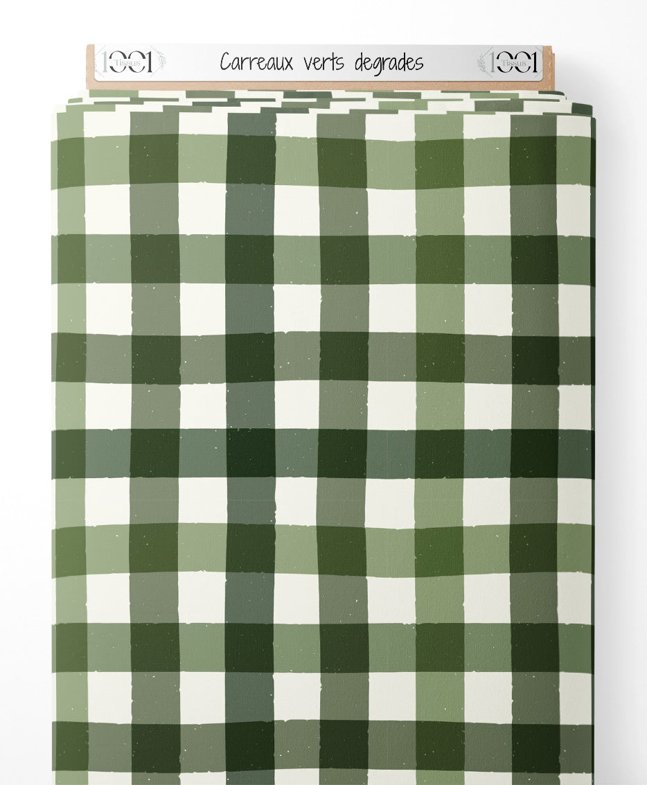 Les carreaux présentent des nuances de vert allant du clair au foncé. Le motif est simple et intemporel, idéal pour un style classique.Les tissus