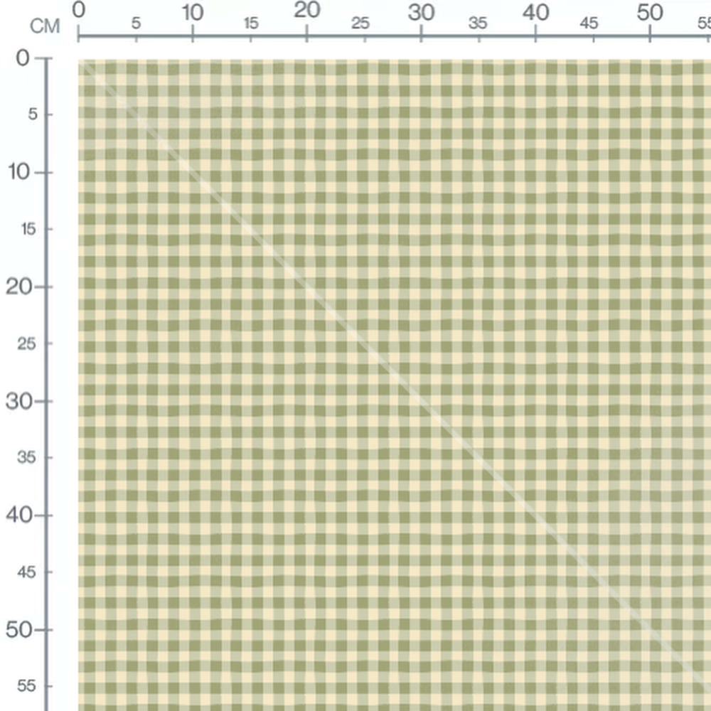 Les carreaux sont de taille uniforme et alternent entre vert et crème. Le motif crée un effet visuel classique et intemporel.Les tissus