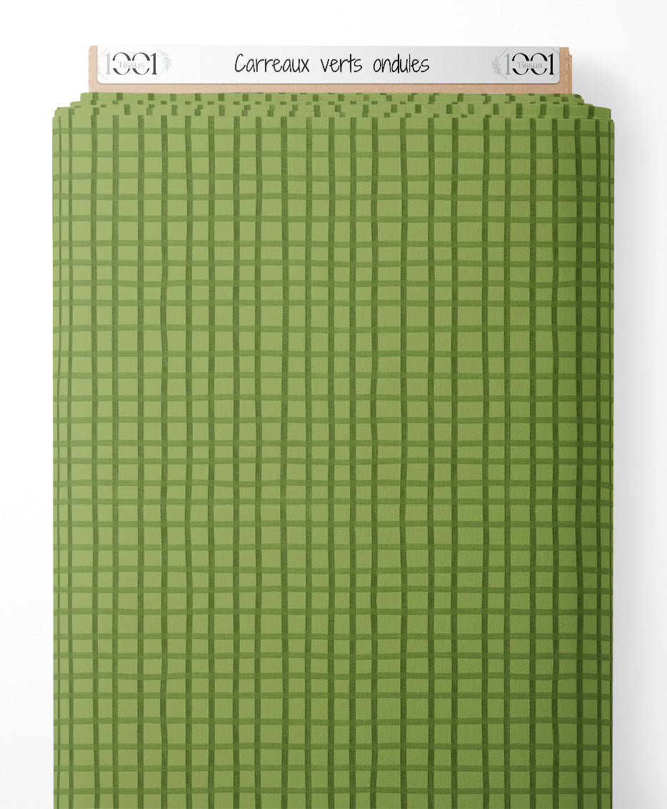 Carreaux verts foncés sur fond vert clair. Motif géométrique simple et répétitif.Les tissus
