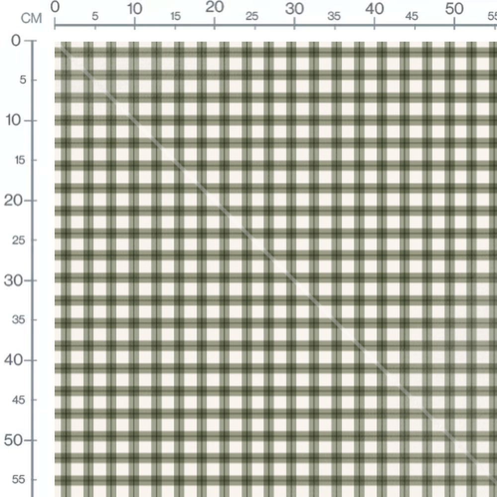 Les carreaux sont formés par des lignes vertes croisées. Le fond blanc met en valeur le motif géométrique.Les tissus