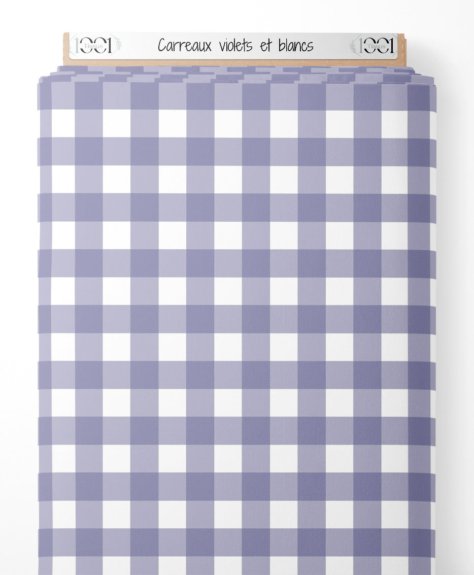 Les carreaux sont disposés en alternance. Les couleurs violettes et blanches créent un contraste doux.Les tissus