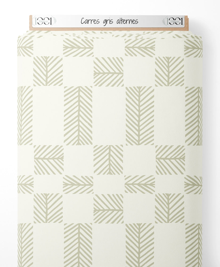 Les motifs linéaires sont disposés en carrés alternés. Les lignes grises créent un effet de chevrons.Les tissus