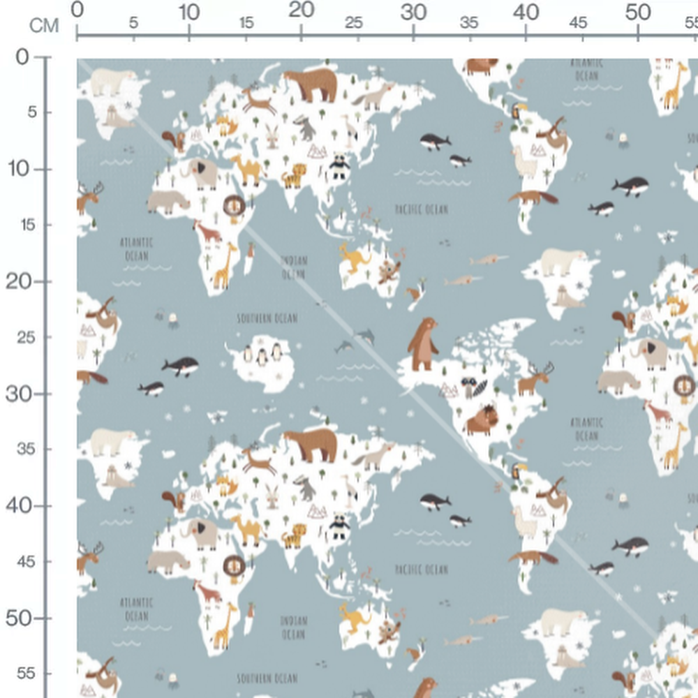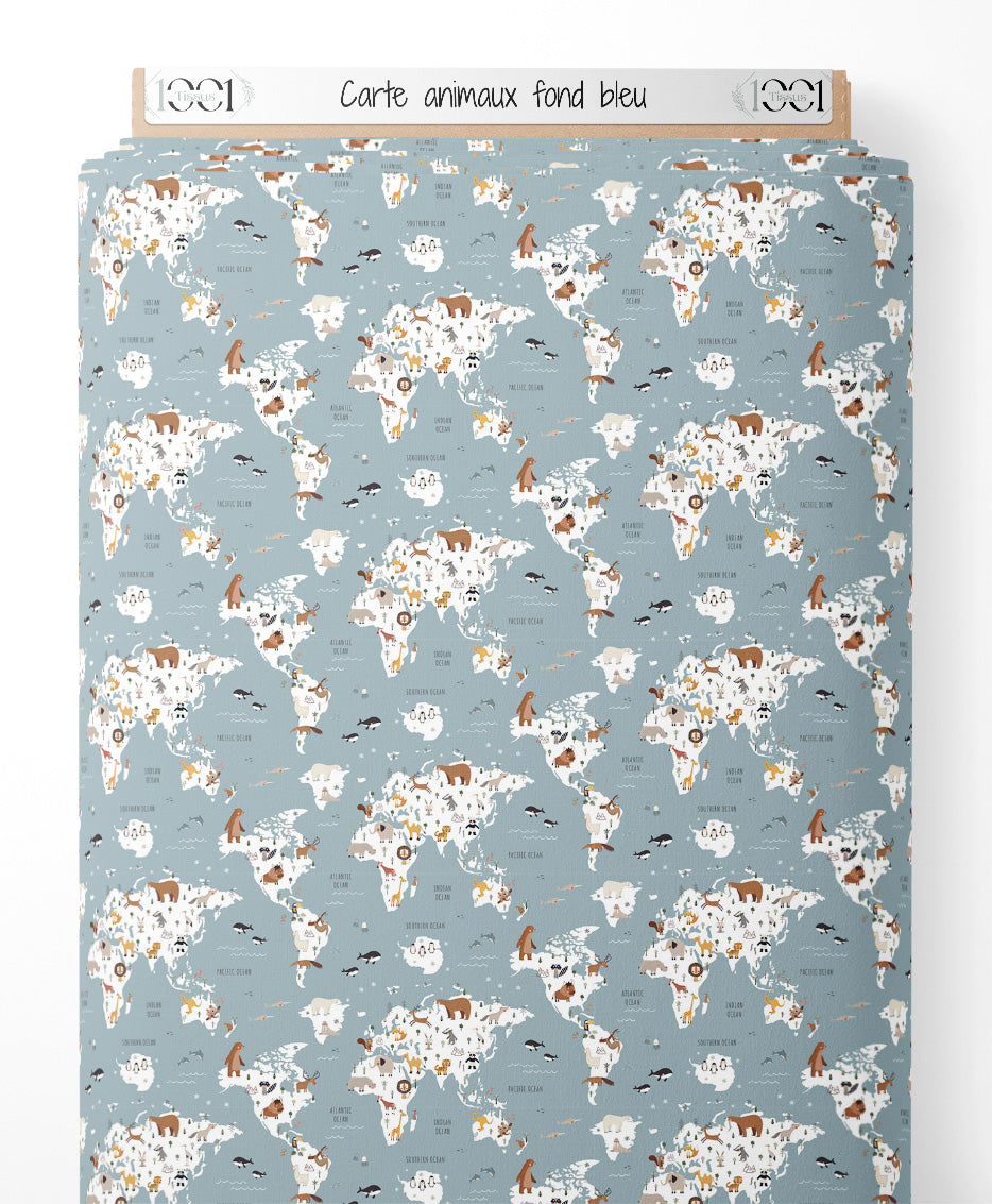Tissu - Carte animaux sur fond bleu