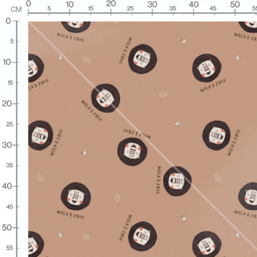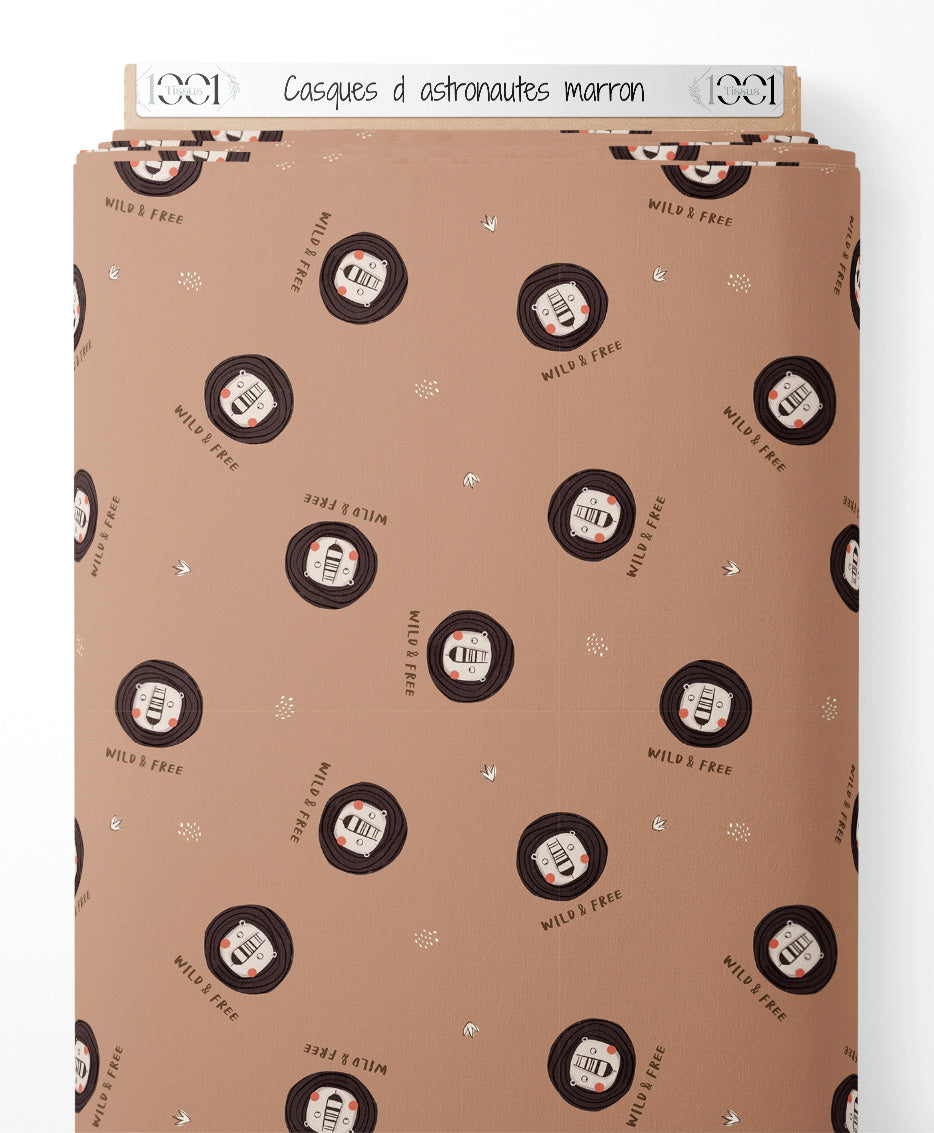 Les casques d'astronautes sont entourés de petites inscriptions 'Wild & Free'. De petits motifs blancs et noirs ajoutent des détails subtils au design.Les tissus