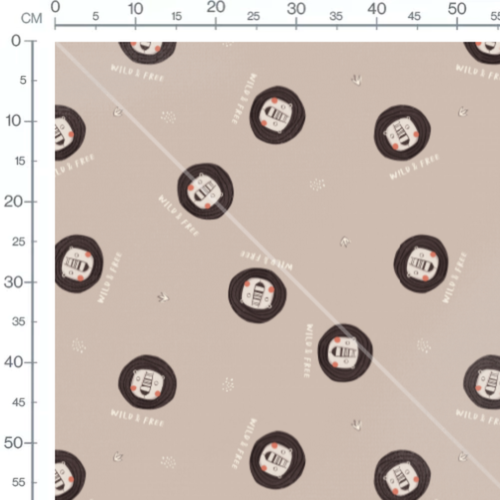 Les casques sont entourés de cercles noirs. De petites flèches blanches et des points complètent le motif.Les tissus