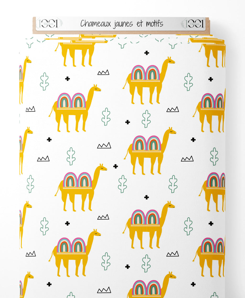 Tissu - Chameaux jaunes et motifs