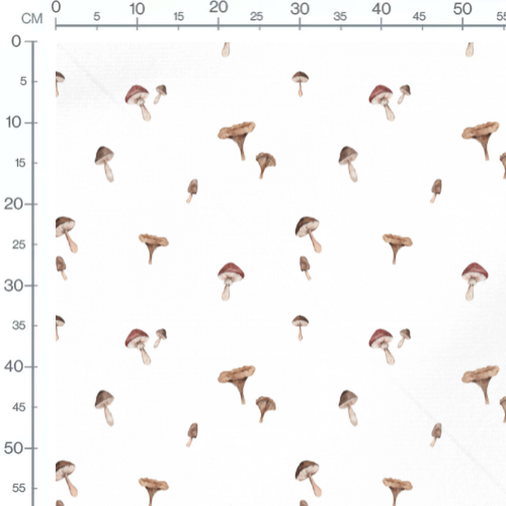 Les champignons sont peints dans des tons naturels de marron et beige. Chaque champignon présente une forme unique, ajoutant de la variété au motif.Les tissus