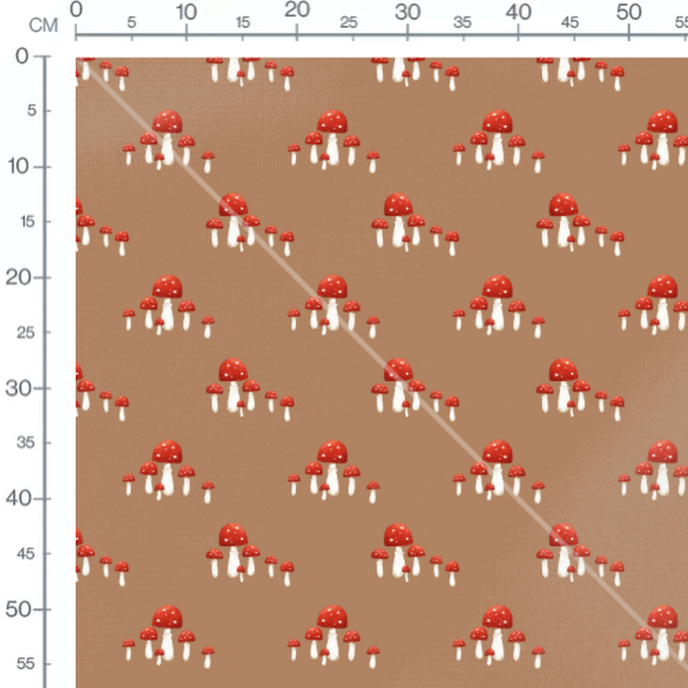 Tissu - Champignons rouges sur brun