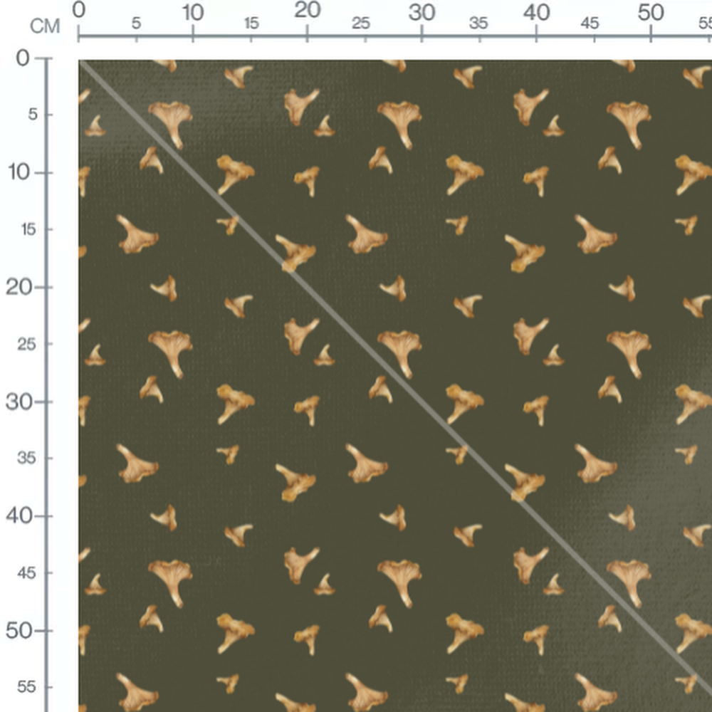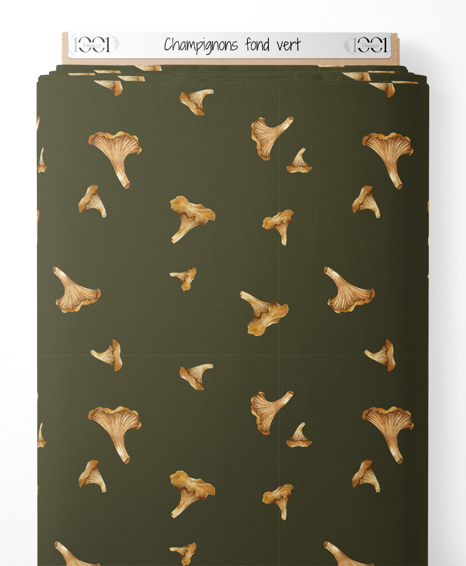 Tissu - Champignons sur fond vert