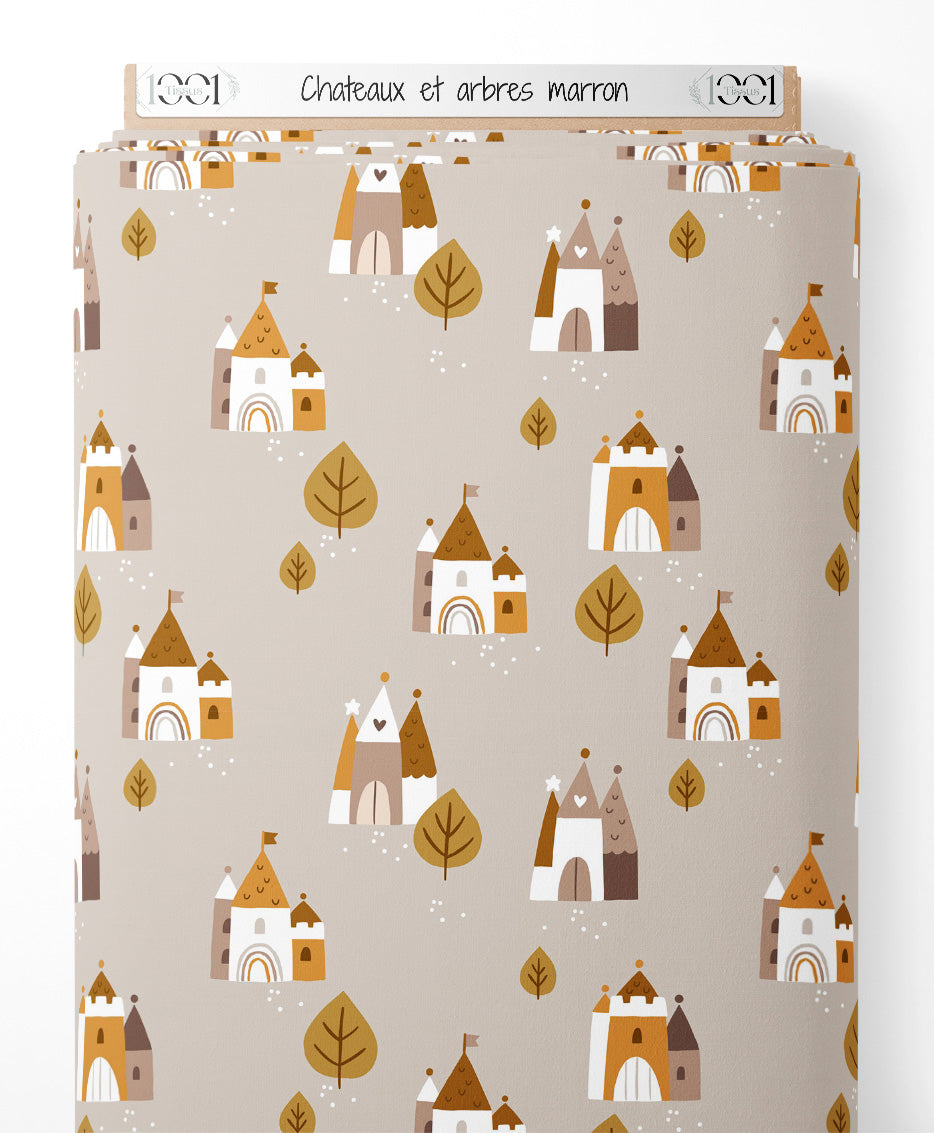 Tissu - Châteaux et arbres marron
