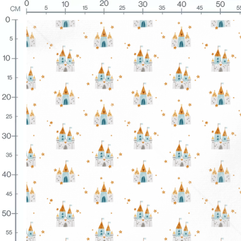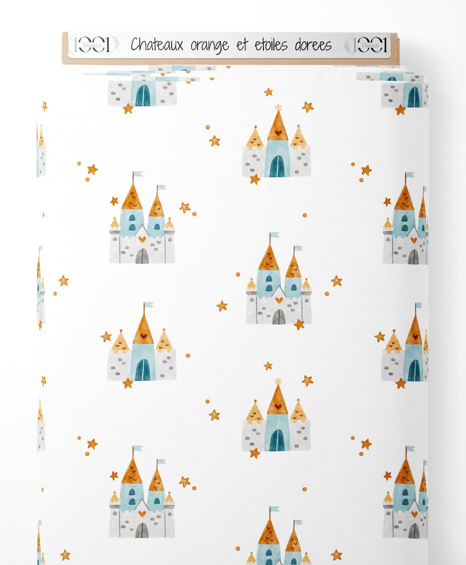 Les châteaux ont des fenêtres et des portes grises. Les étoiles dorées sont dispersées entre les châteaux.Les tissus
