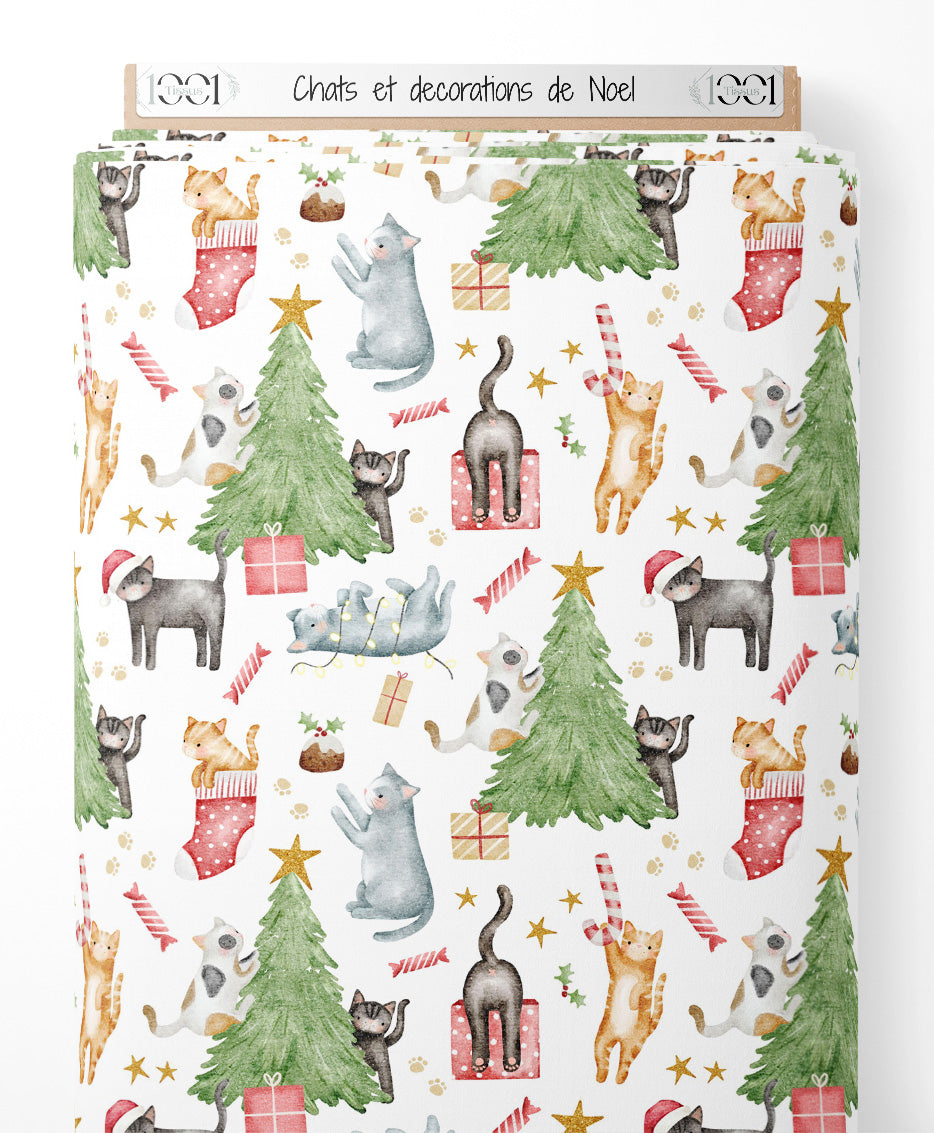 Tissu - Chats et décorations de Noël