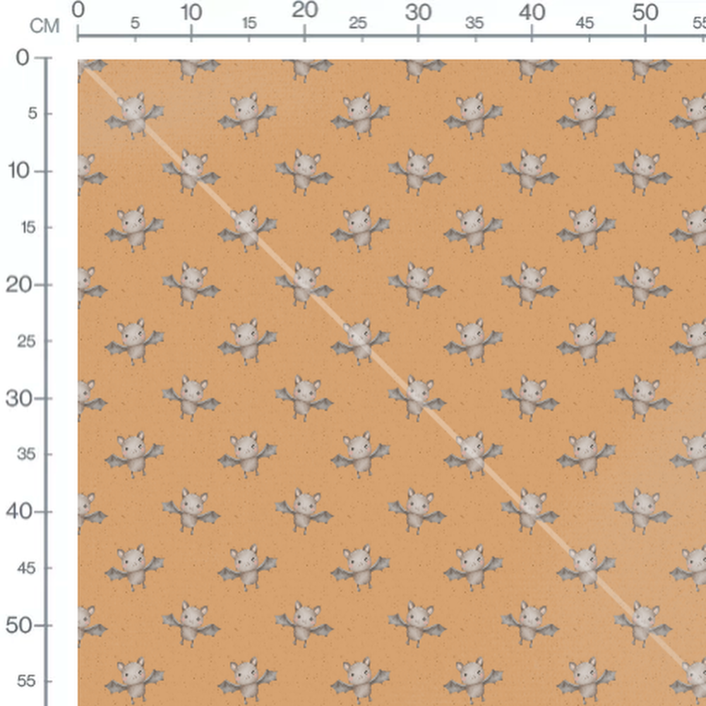 Les chauves-souris ont des oreilles pointues et des ailes déployées. Le fond orange est parsemé de petites taches brunes.Les tissus
