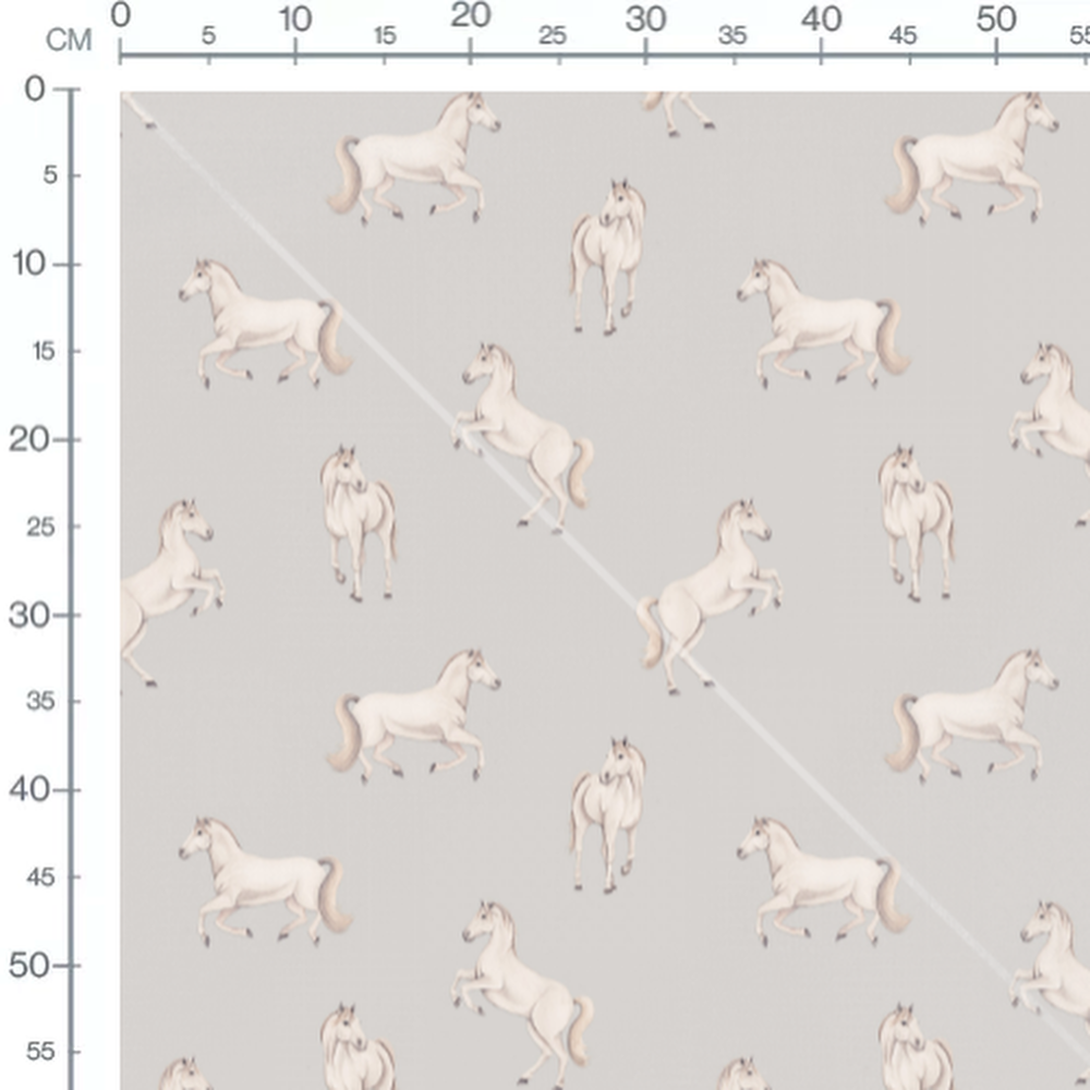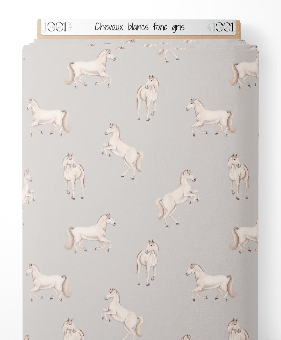 Tissu - Chevaux blancs sur fond gris