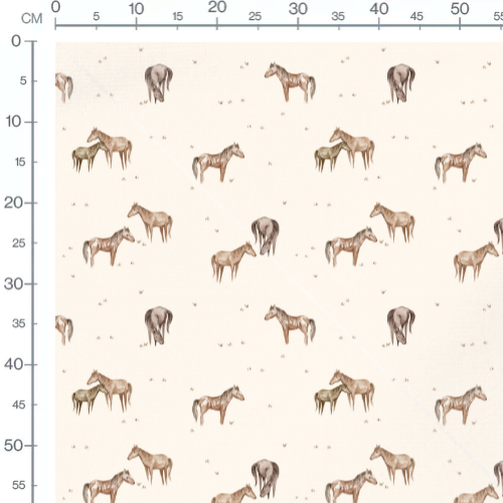 Les chevaux sont représentés dans différentes positions. Les nuances de brun et de gris ajoutent de la variété au motif.Les tissus