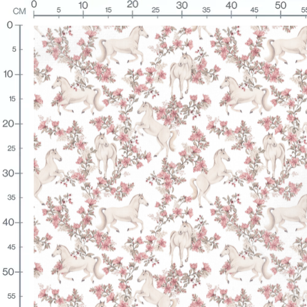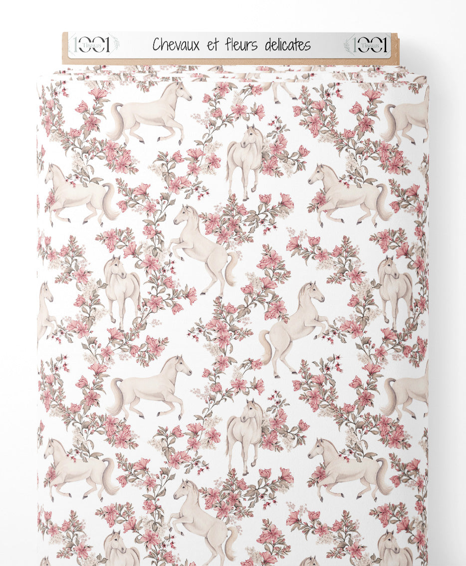 Tissu - Chevaux et fleurs délicates