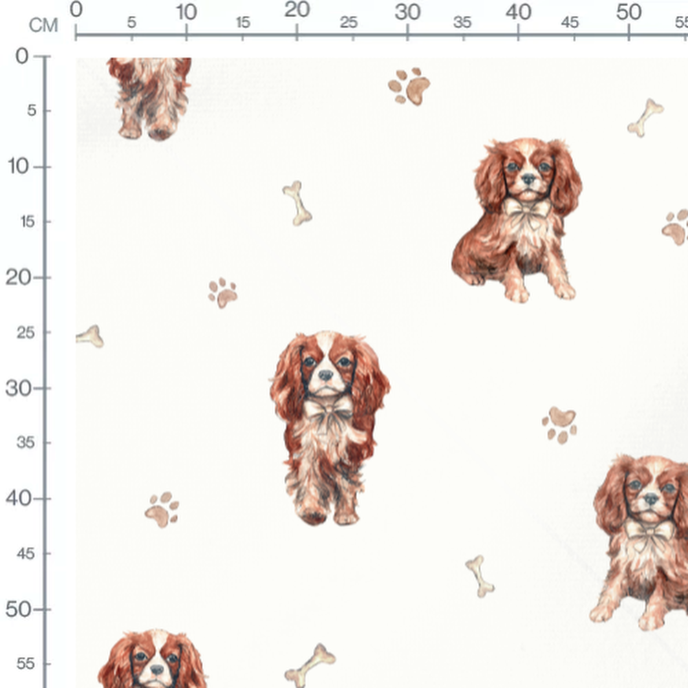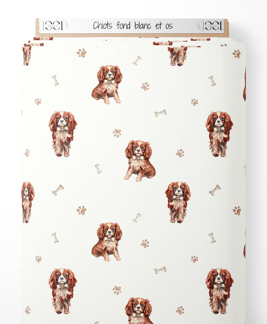 Tissu - Chiots sur fond blanc et os