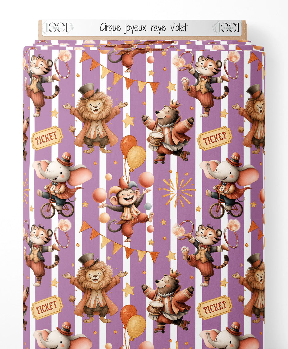 Tissu - Cirque joyeux rayé violet