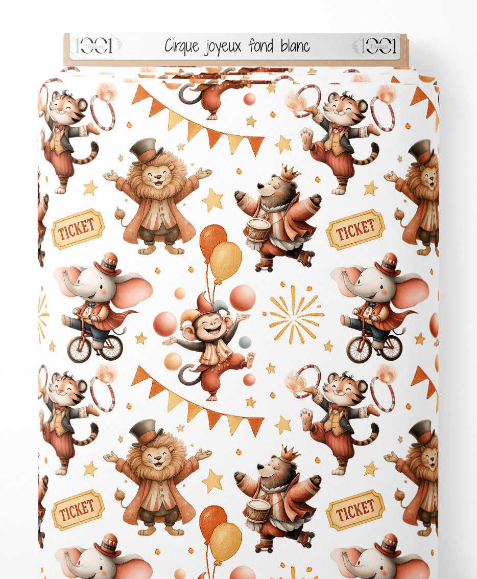 Tissu - Cirque joyeux sur fond blanc