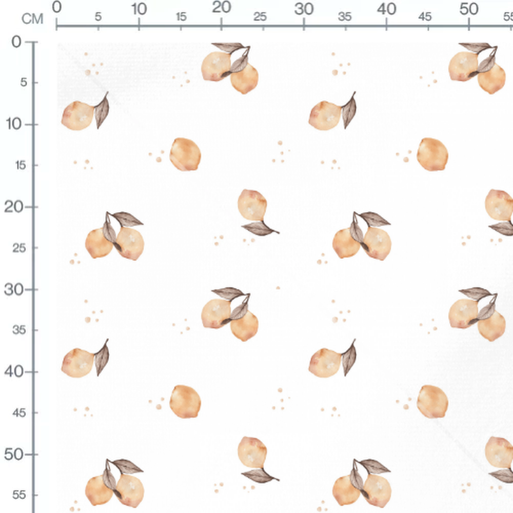 Les citrons sont accompagnés de feuilles brunes. Les taches beige clair ajoutent un effet de texture subtile.Les tissus