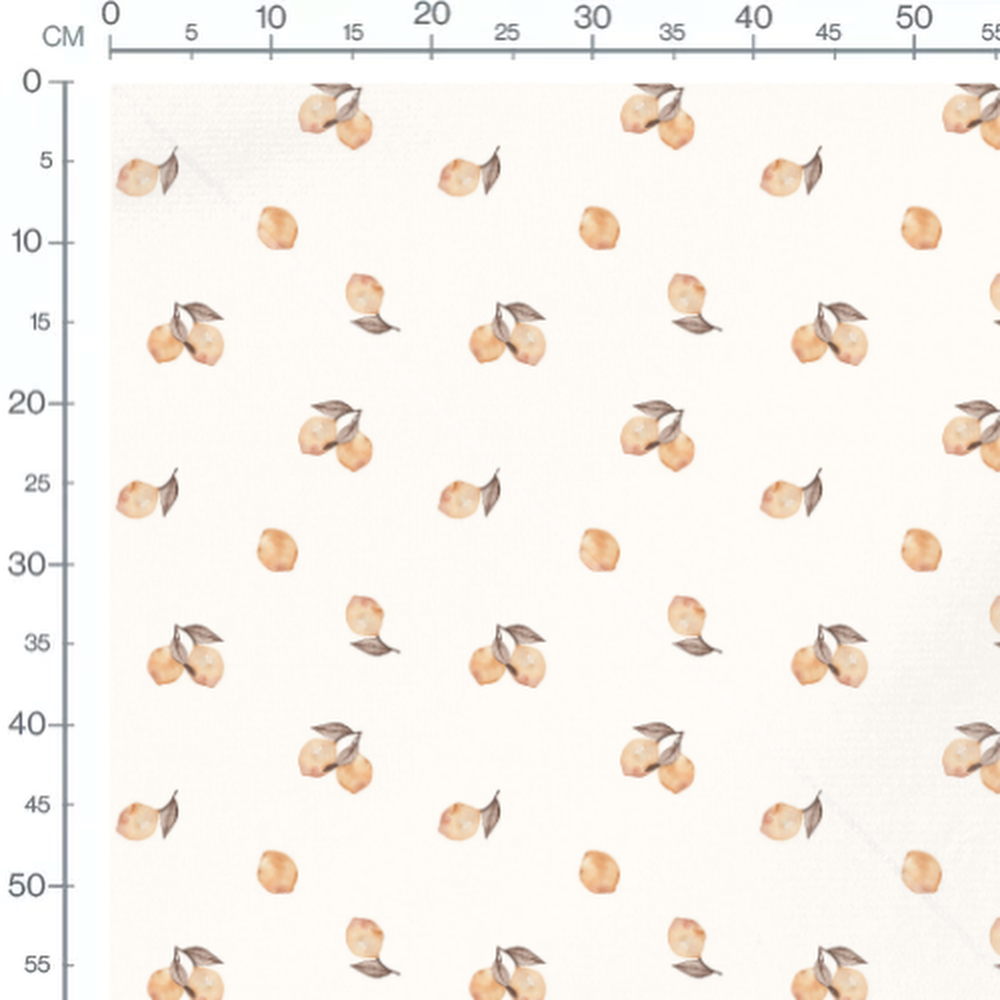 Les citrons sont peints dans des tons doux de jaune. Les feuilles brunes ajoutent une touche naturelle au motif.Les tissus