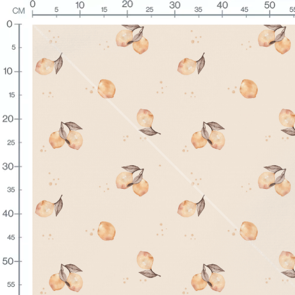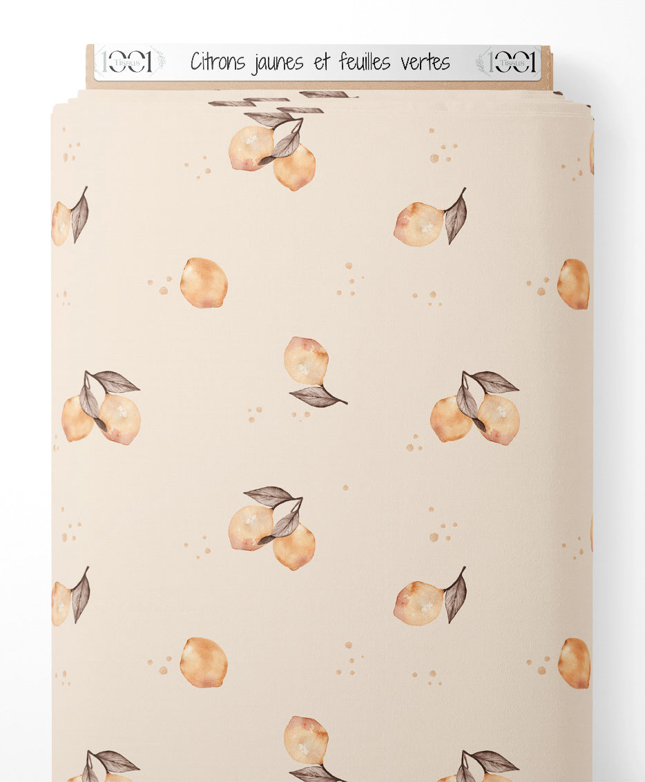Les citrons sont peints dans des tons doux de jaune. Les feuilles sont dans des nuances de vert foncé. Le fond beige ajoute une touche de chaleur au motif.Les tissus