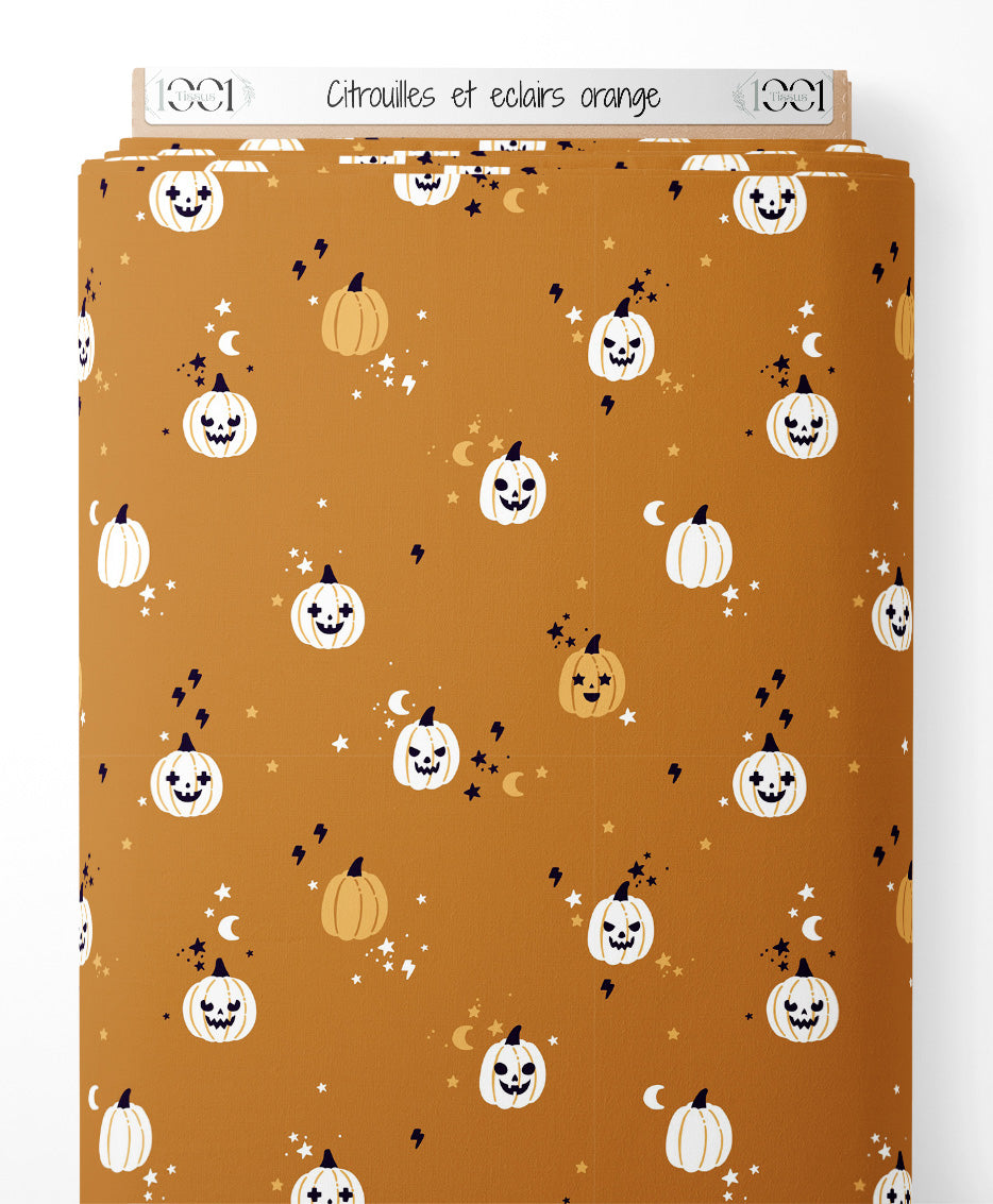 Tissu - Citrouilles et éclairs orange