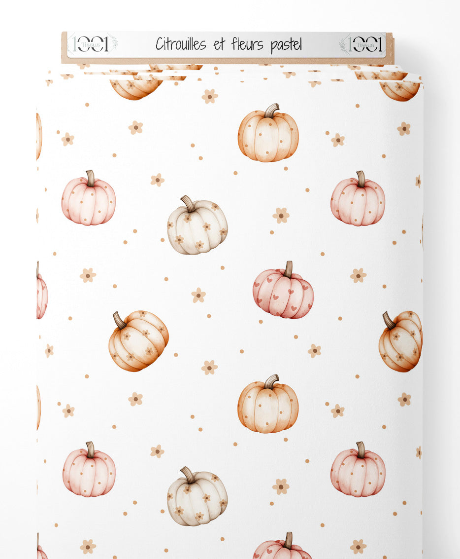 Les citrouilles sont ornées de motifs floraux délicats. Les fleurs et pois ajoutent une touche de douceur au design.Les tissus
