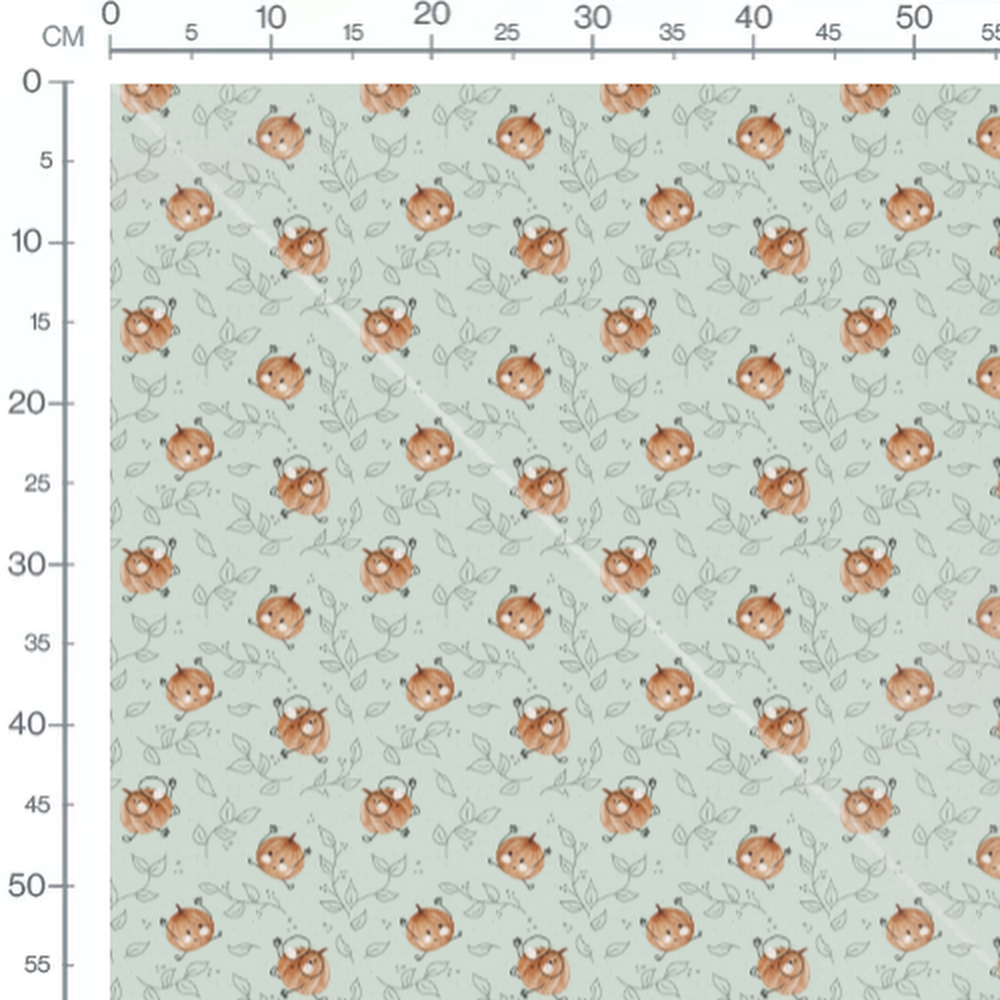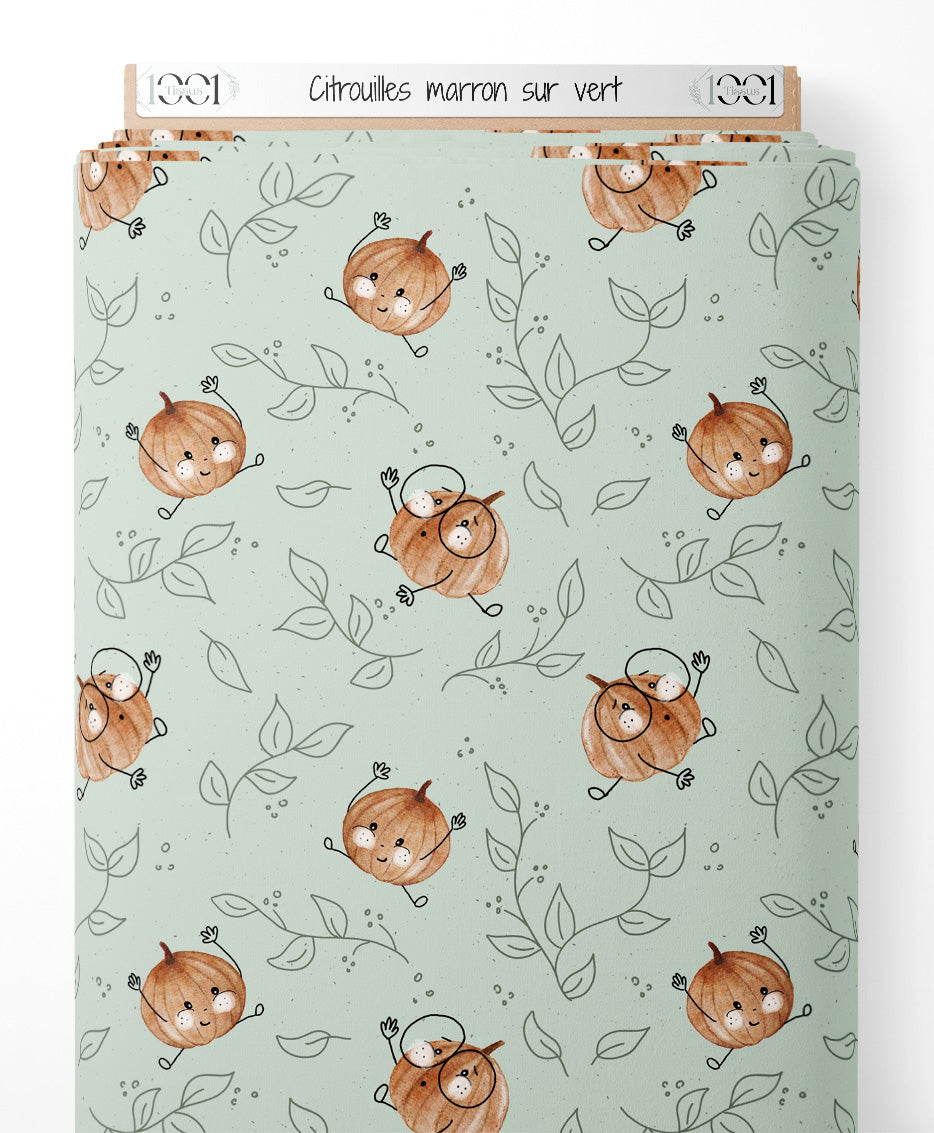 Tissu - Citrouilles marron sur vert