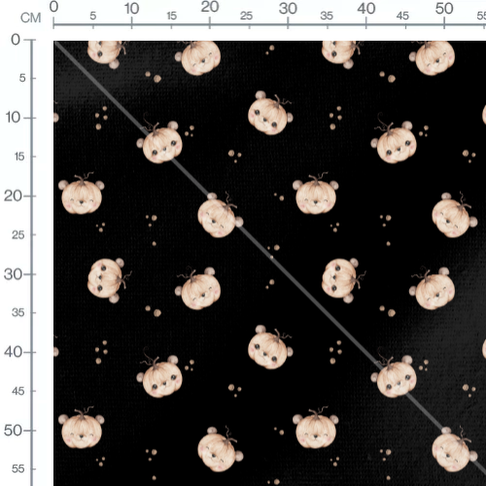 Les citrouilles ont des traits de visage doux et des oreilles rondes. Les petits points beige ajoutent un élément décoratif subtil.Les tissus