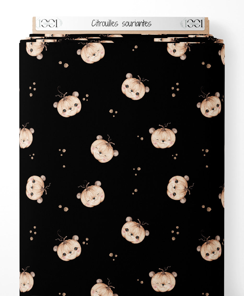 Tissu - Citrouilles souriantes sur fond