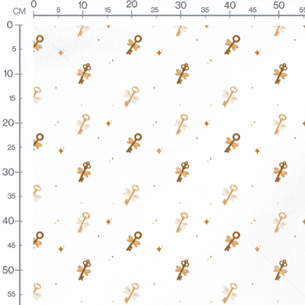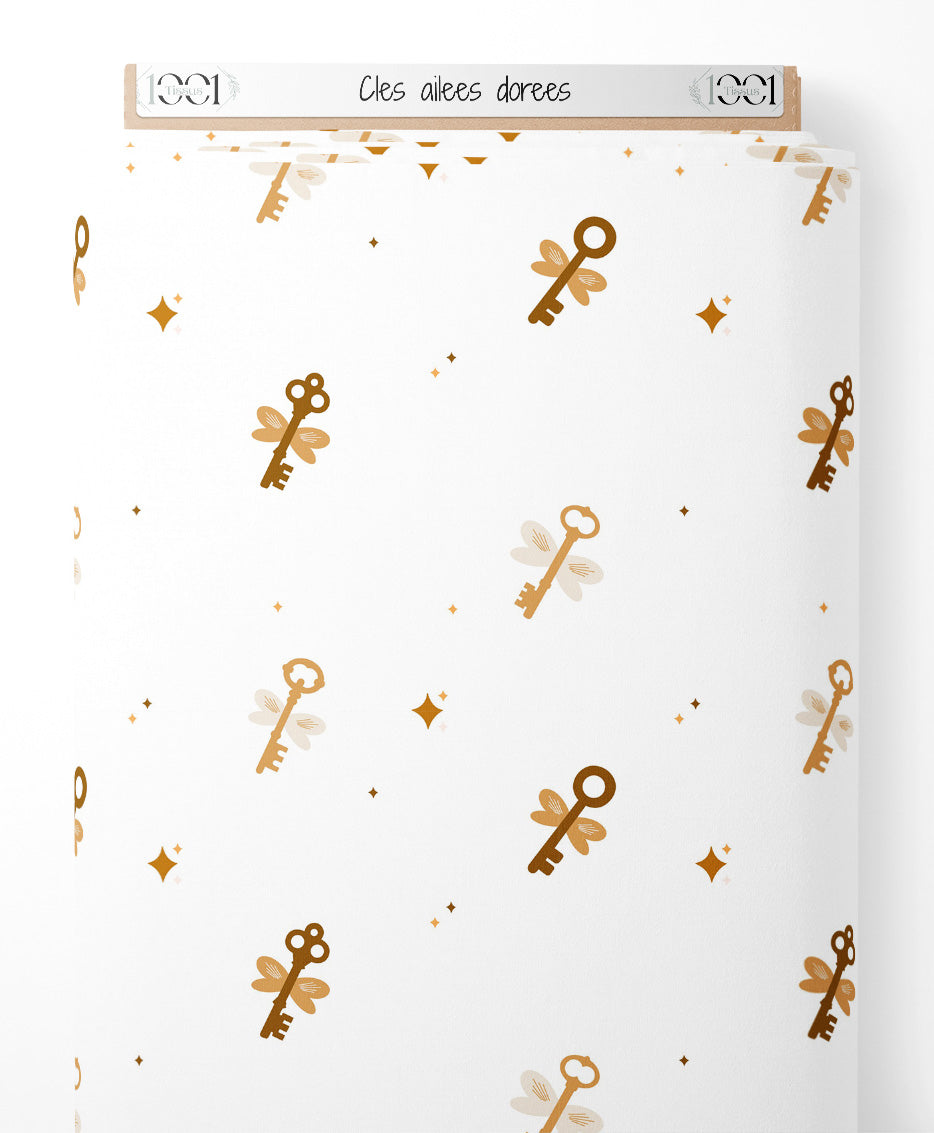 Tissu - Clés ailées dorées