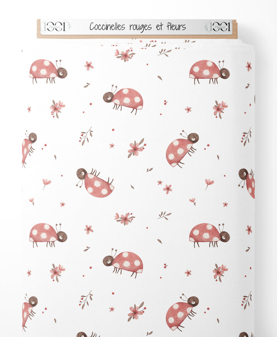 Tissu - Coccinelles rouges et fleurs