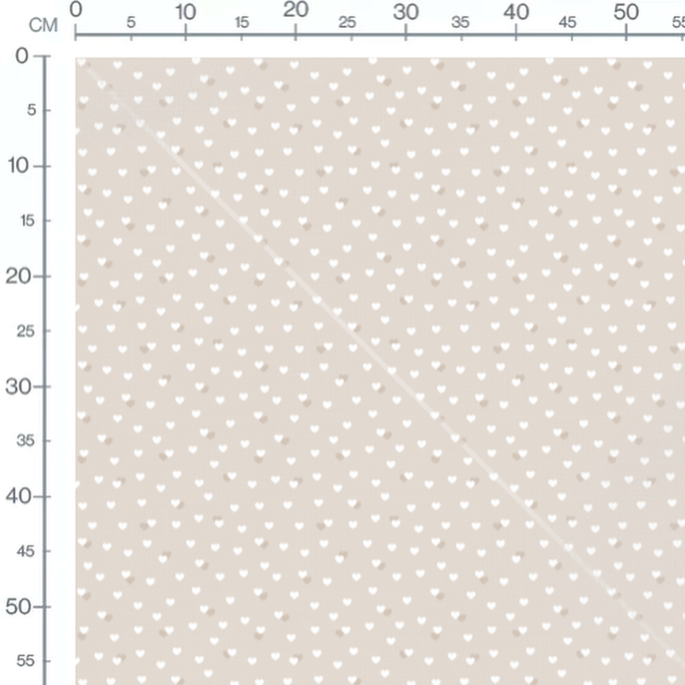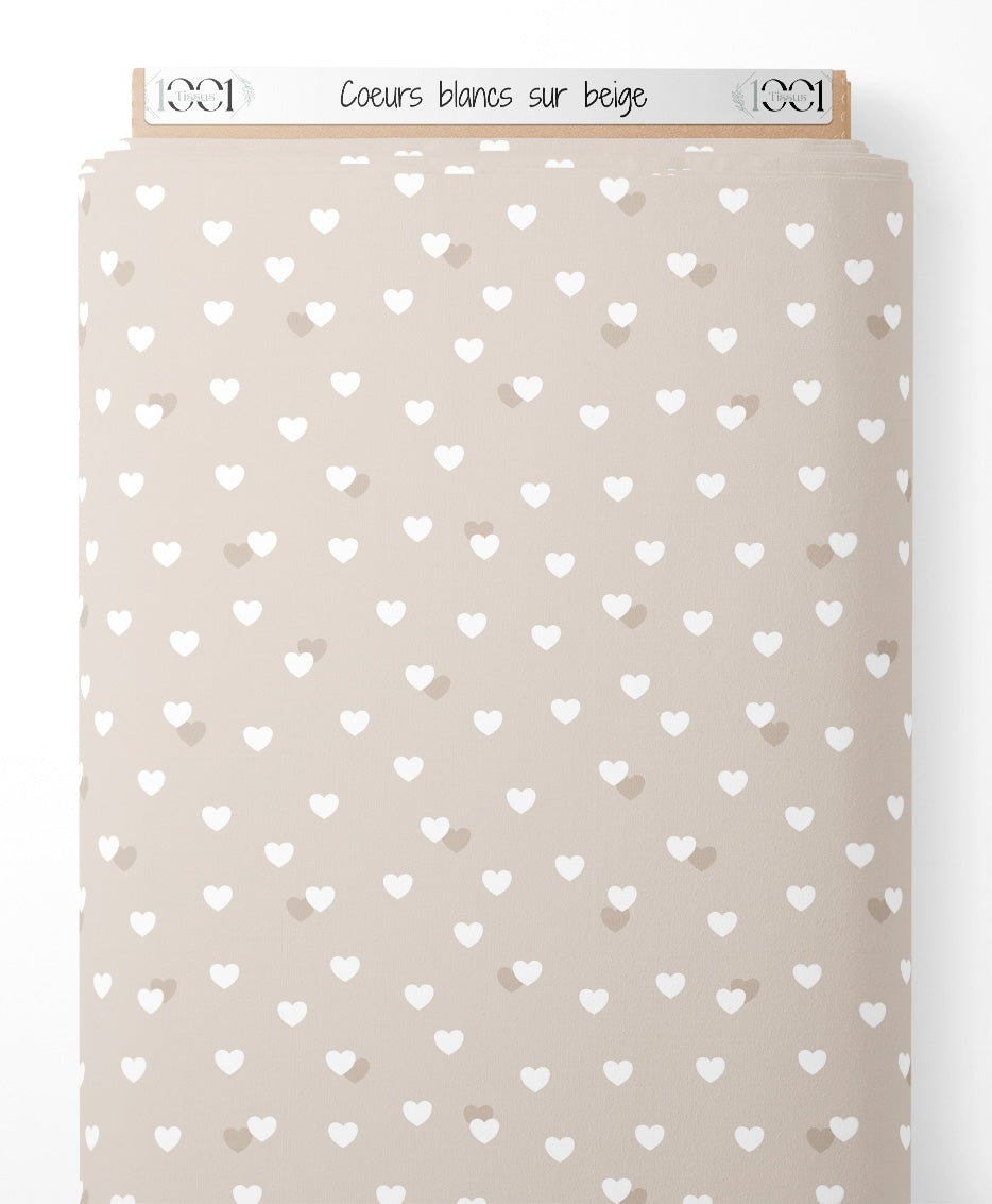 Petits cœurs blancs sur fond beige. Quelques cœurs beige clair ajoutent de la variation.Les tissus