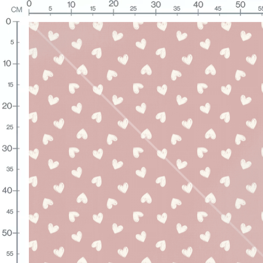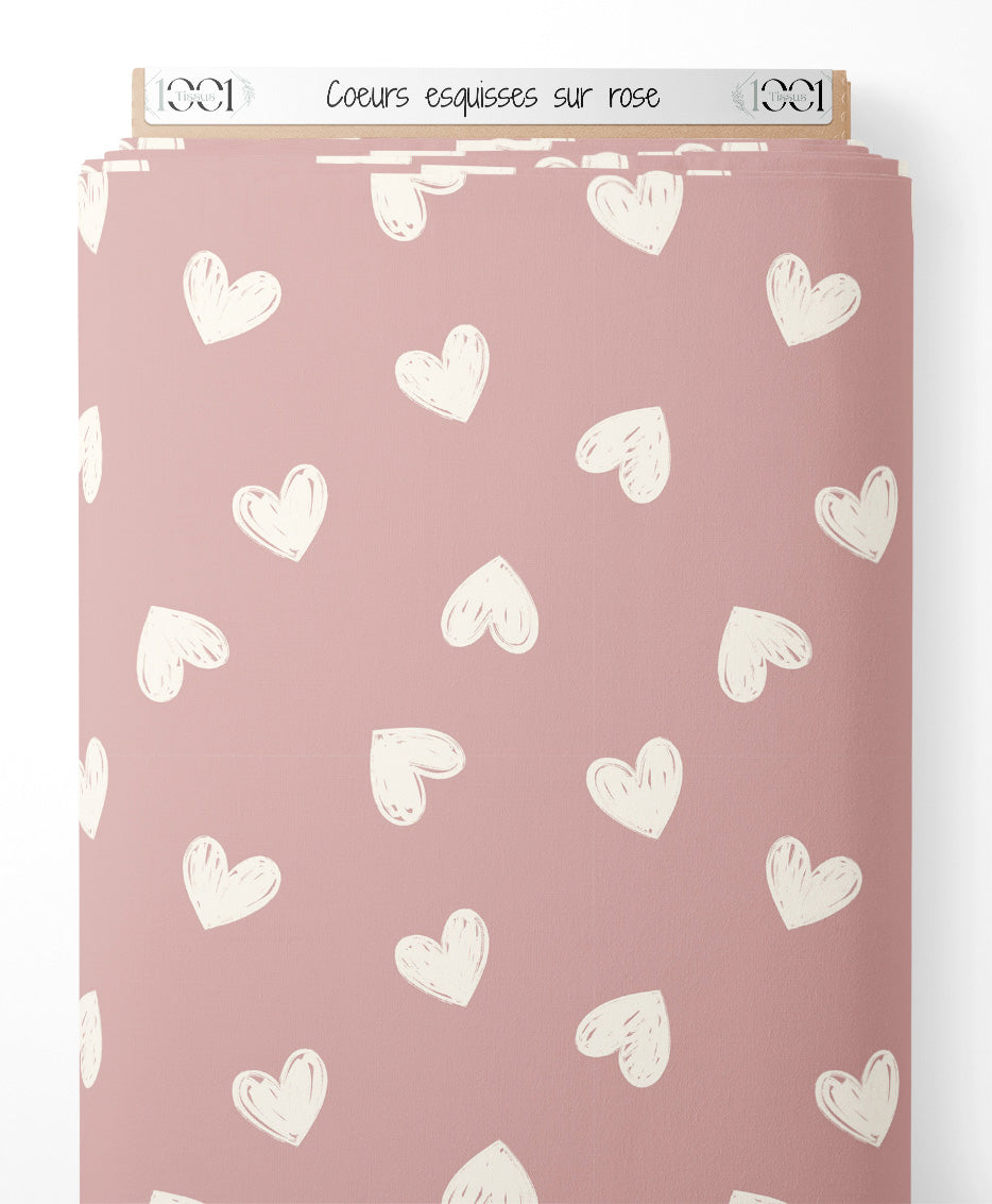 Les cœurs sont esquissés avec un effet crayonné. Le fond rose apporte une touche douce et uniforme.Les tissus