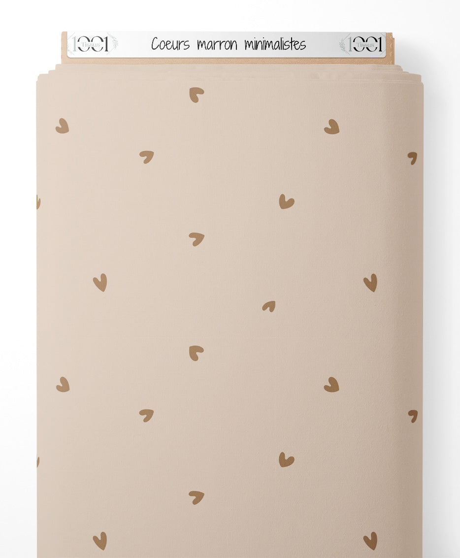 Petits cœurs marron sur fond beige. Motif minimaliste et épuré.Les tissus