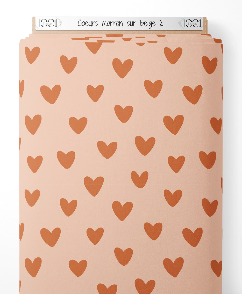 Cœurs marron sur fond beige. Motif répétitif et uniforme.Les tissus